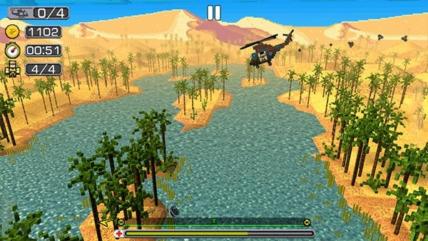 作为该游戏的第二部作品,在游戏中玩家将成为一名直升机驾驶员,挽救战场上受伤士兵的性命,对战向你开火的坦克和卡车,并将友军运送回他们的基地。游戏包含解救人质、歼灭敌军、架设桥梁等多个任务供玩家挑战,非常有意思。本作采用3D引擎制作,玩家将进入一个像素方块世界,所有背景地貌、建筑物、直升机、人物全部都是像素方块构成的,看起来颇有一丝《我的世界》的感觉。