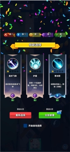 2、当最上方的进度条填满后即可升级,升级时能挑选一项技能来帮助玩家进行游戏。