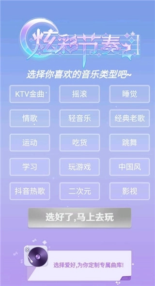 1、打开游戏,选择游戏音乐类型,点击马上去玩