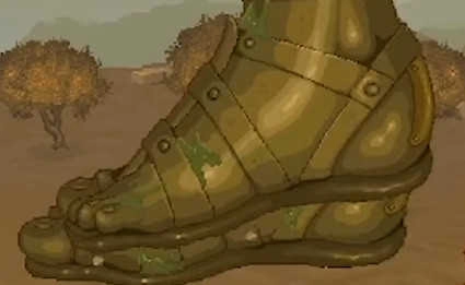 在碰到青铜巨人之前,玩家会在某个普通关卡的背景中瞧见青铜巨人的整条腿。