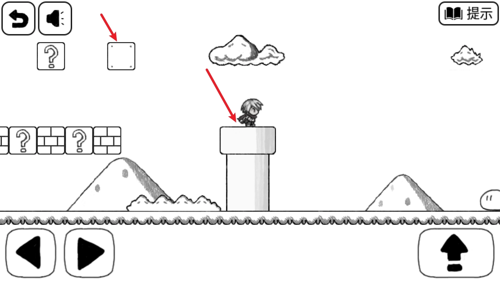1、首先来到图示位置,跳跃后顶出这个隐藏的砖块,其他就不要去撞了。