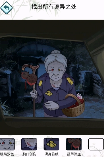 4、第四个请求搭车的是位老奶奶,她有着异色的眼睛,口袋里装着符咒,脖颈处留有受伤的痕迹,手中的葫芦正往下滴落不明液体,不过还是得同意她的搭车请求。