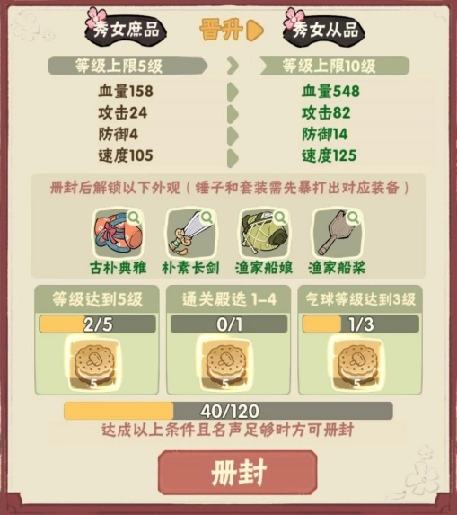 每当我们将妃位提升一级,就能解锁实力更强的妃子。击败她们之后,就能领取对应级别的奖励。