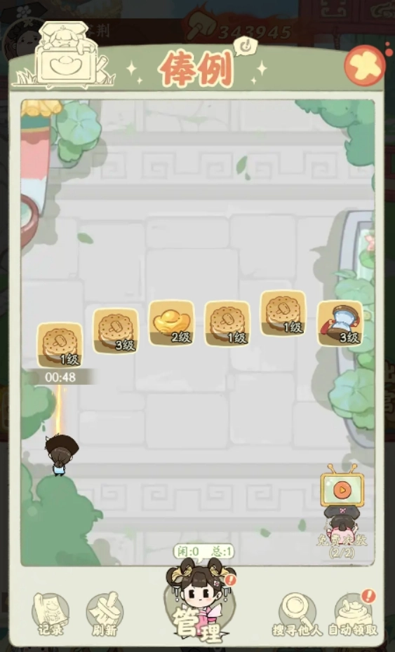 俸例会随机刷新各类资源,掌柜可派遣宫女进行采集。