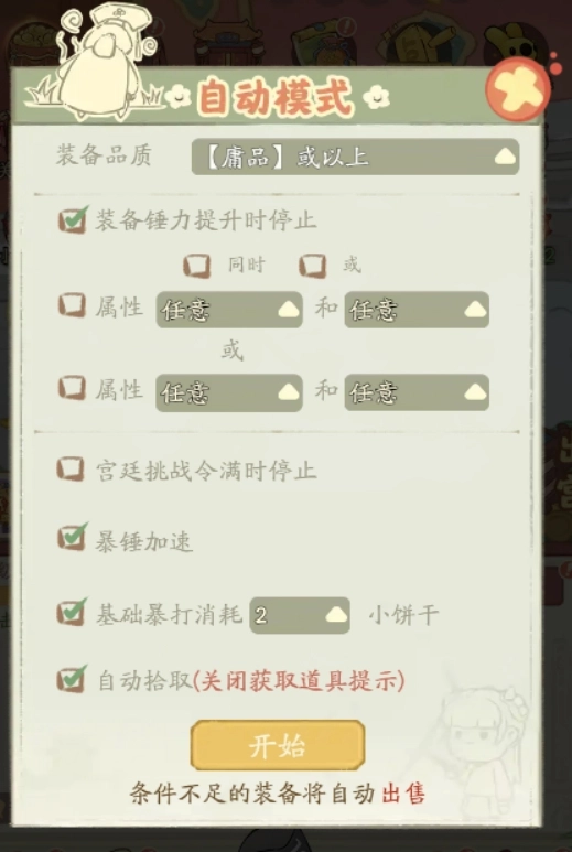 当秀女等级达到妃位正品时,即可解锁自动模式;若已开通月卡,则能提前解锁该模式并加快暴捶速度。