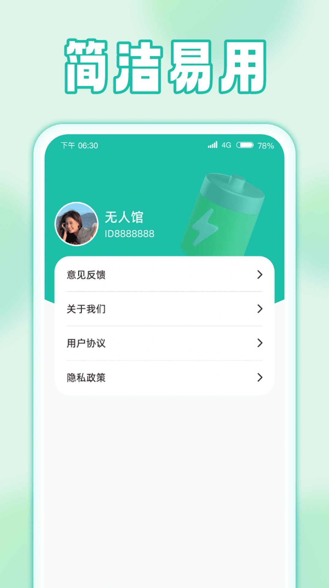 1、软件界面简洁、直观,用户可以在任何时候查看电池的电量。