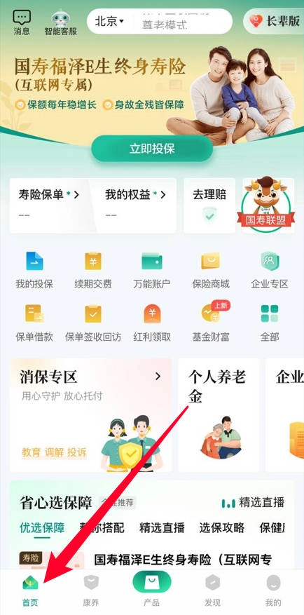 1、进入App首页后,点击底部“首页”栏目,可查看各类保险产品及详情信息。