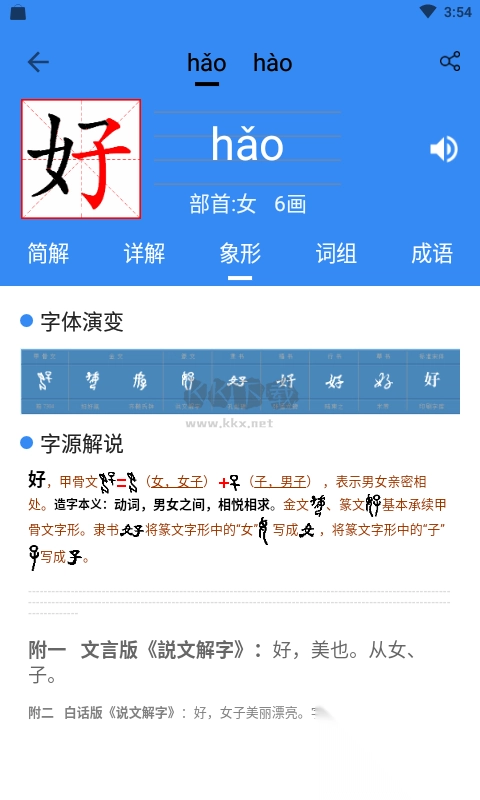 象形字典APP,堪称一款集高效、专业、实用为一体的多功能学习宝典,也是极为出色的词典与成语查询工具。它拥有海量数据,专业且权威,具备汉字、词组、成语、近/反义词、例句、读音、笔画演示等众多功能。借助象形字典APP,用户能够迅速搜索到所需词汇,还支持查看历史数据,更有笔画动态图呈现给大家。感兴趣的用户,赶快前往KK下载体验吧!