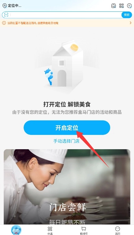 1. 定位设置:首次使用时,需要授权地理位置权限,系统会自动匹配周边的盒马门店,以此确保可购商品与配送范围能精准对应。