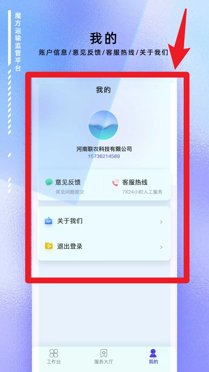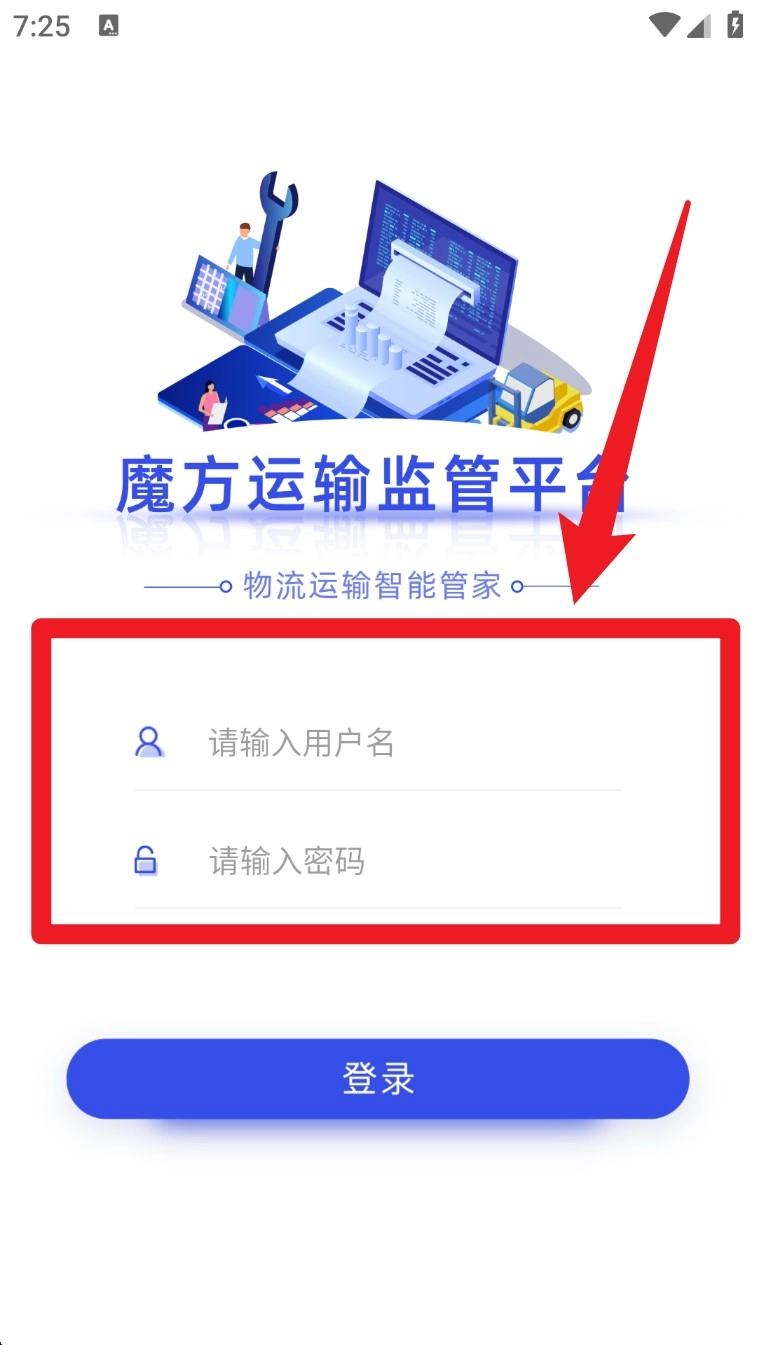 1. 打开App,输入用户名和密码,点击“登录”,即可进入魔方运输监管平台。