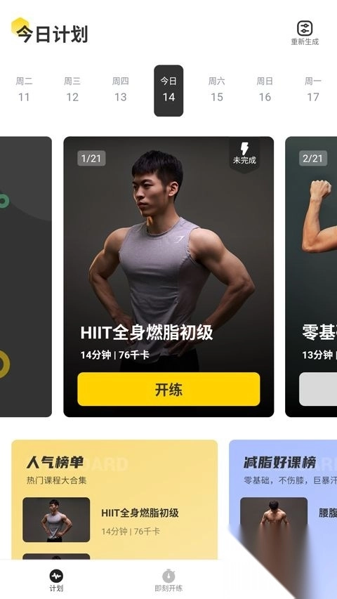 3、点击下方即刻训练,这里有着很多健身训练计划