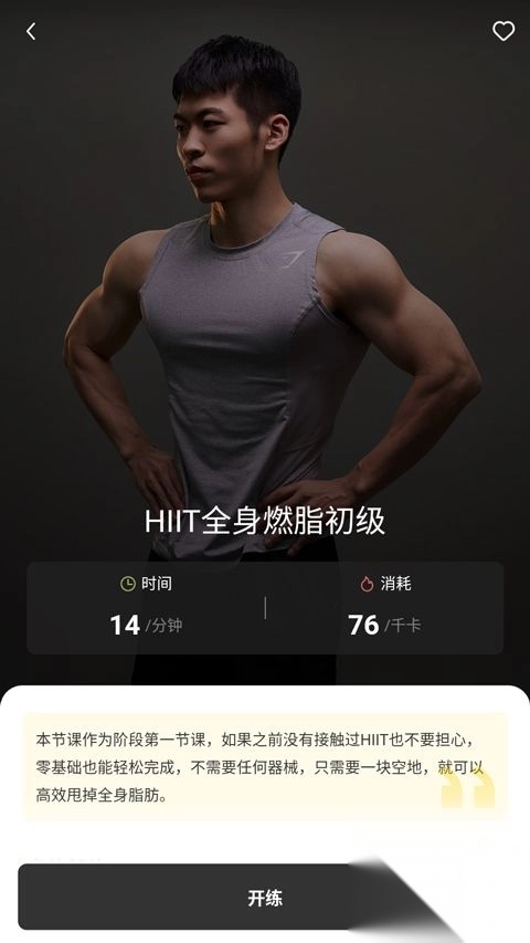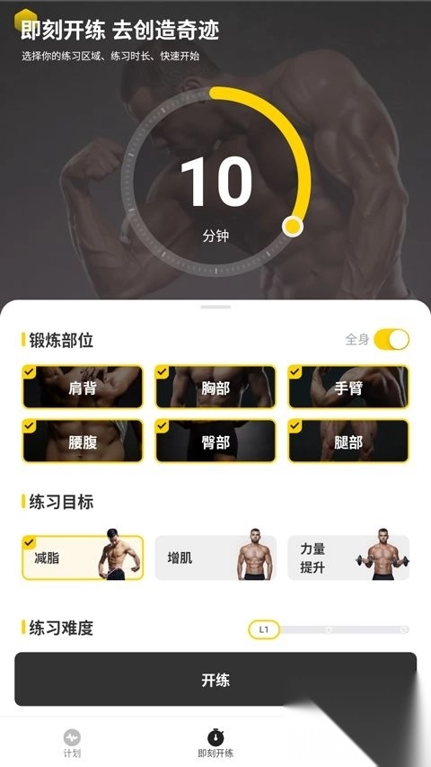 4、用户能够自行选择锻炼部位、目标以及难度,然后开启锻炼。