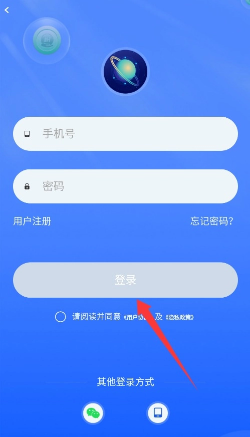 2、在账号登录页面输入手机号及密码,勾选用户协议后点击登录按钮完成身份安全验证。
