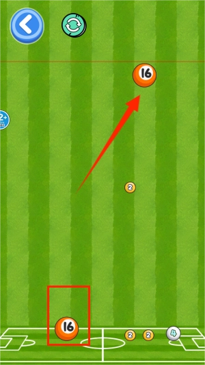 3、轻点顶部悬浮的球体,让它下落。当两个数字相同的球体碰到一起时,会自动合并成数值更高的新球体。