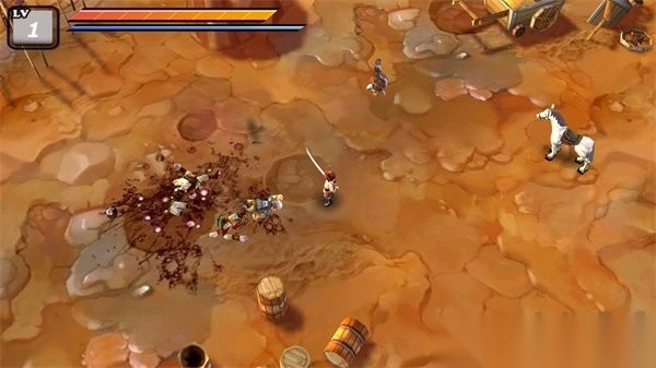 5、奖励关卡:骑马收集钱币至终点,途中躲避障碍、击杀敌人,双击屏幕实现跳跃。