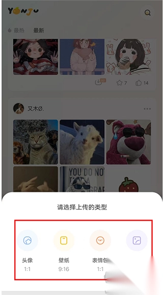 2、选择需要投稿的图片类型