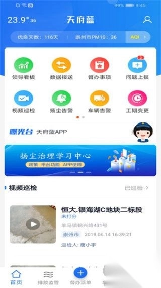 天府蓝app是一款专注于环保工作的在线办公软件,目前在成都市与贵阳市均可使用。鉴于当下环境污染形势严峻,为加强环境保护力度,我们特此开发了这款软件。该软件设有专属工作平台,不仅能助力政府降低沟通、协同及管理成本,还可有效提升工作效率。此外,软件具备上报功能,人人皆可参与。只需打开软件,拍照、记录问题并上报提交即可。而且,通过这款软件,你还能查看处理的全过程,操作简单便捷。有需要的朋友,赶快下载体验吧!