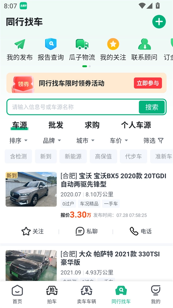 3、于“拍车”界面,既能查看平台每日新上架的车辆,还能挑选竞拍自己心仪的车。