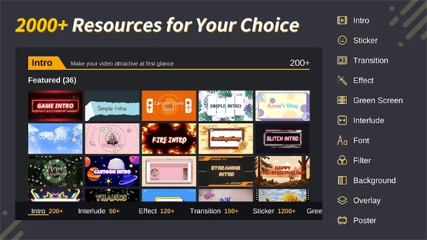 3、模板库:提供数千种视频开头、转场模板,生成创意内容。