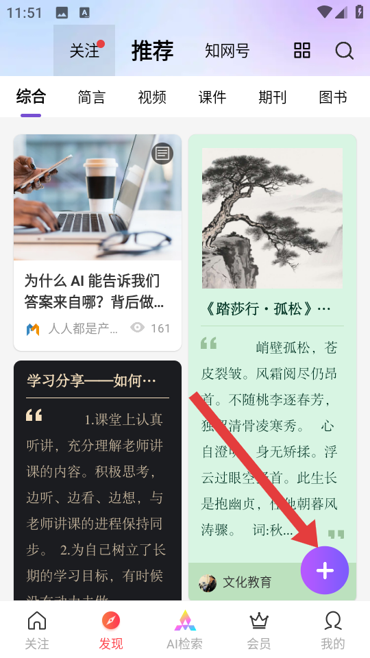 1、打开APP,进入发现页面,点击右下角紫色+按钮,弹出创作功能菜单。