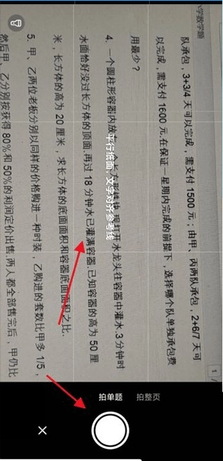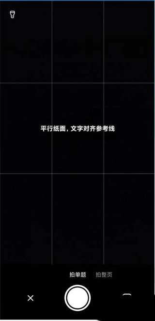3、接下来,将手机摄像头对准题目,要确保参考线与纸面文字平行,之后点击【拍摄】按钮。