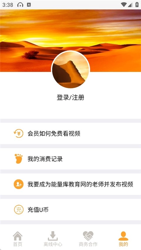 7、在“我的”模块中,用户能够执行登录/注册操作,还能发布个人视频以及管理学习记录等。