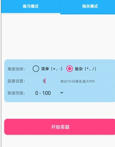 2、练习模式可助力用户提高自身的口算能力。