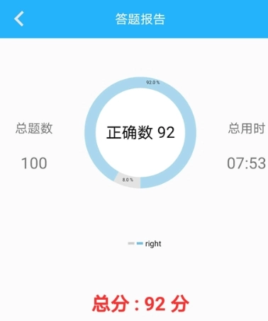4、用户完成答题练习后,系统会给出答题报告。