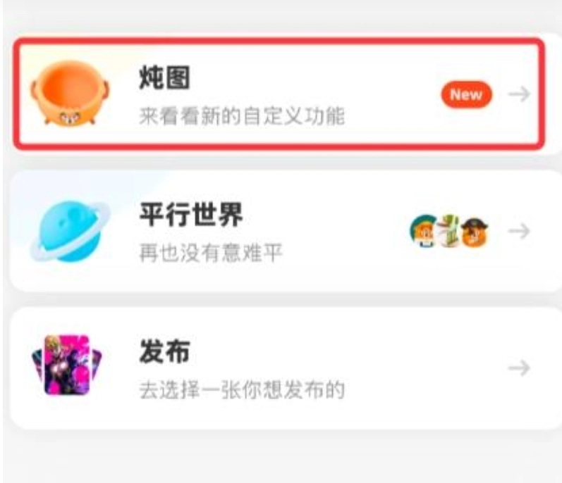 2. 在展示出的功能选项里,挑选“炖图”功能。
