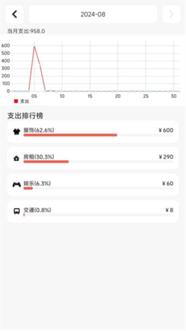 5、以图表形式呈现每月收入与支出的统计数据,助力用户更直观地洞悉自身财务状况。