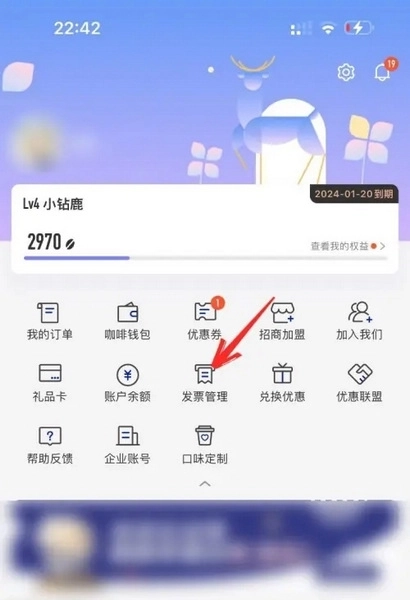 1首先,在手机上开启瑞幸咖啡软件,随后在“我的”页面中找寻发票管理。