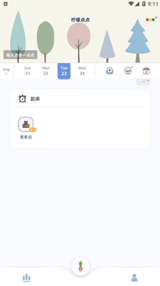 2. 界面简洁且可爱,持续坚持打卡习惯,便能种植专属植物。
