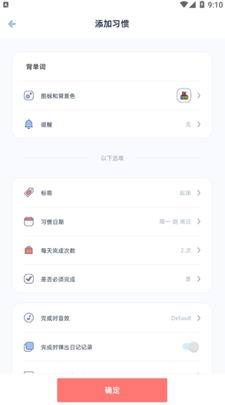 3、用户还能够自行定义习惯,给习惯增添新的设定及选项,点击“确定”即可完成添加。