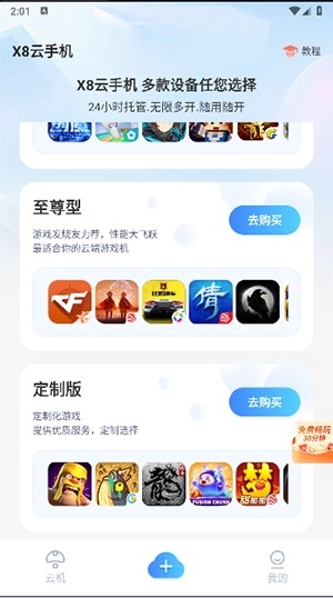 X8云手机,堪称功能超强的云手机软件。用户只需开启软件,手机即刻摇身一变成为高配电脑,各类大型游戏皆能畅快游玩,游戏全程毫无卡顿,画质更是细腻清晰。要是你对这款软件感兴趣,那就赶紧拿起手机来体验一番吧。