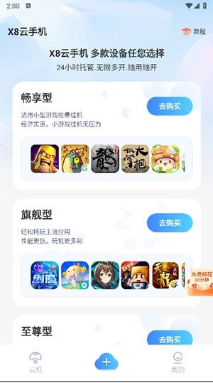 2、提供多种配置套餐,全方位保障你畅享流畅、高清,且具备不占内存、不费流量、不闪退特性的云手机体验。