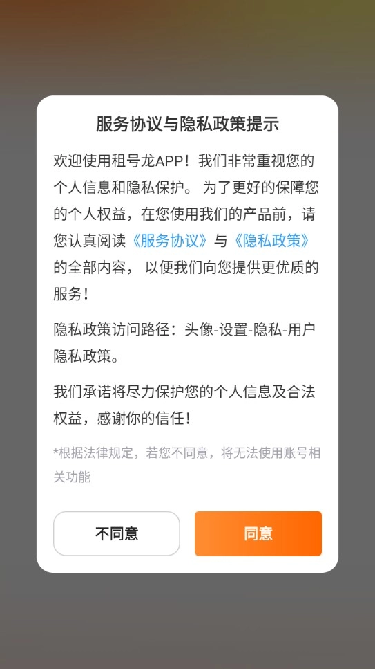 1、第一步,在本站完成租号龙的安装后,仔细查看相关政策与协议,并予以同意。