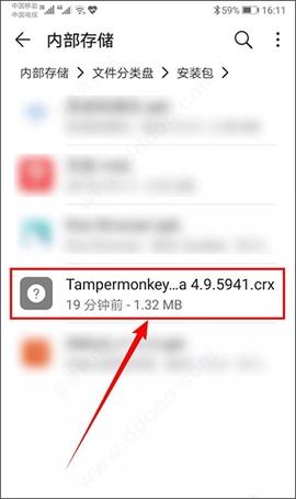 9. 接着在手机里找到crx格式的Tampermonkey扩展插件文件,并点击该文件。