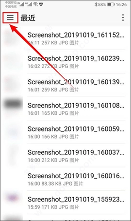 7. 在弹出的“最近”界面里,点击位于左上角的三横图标。