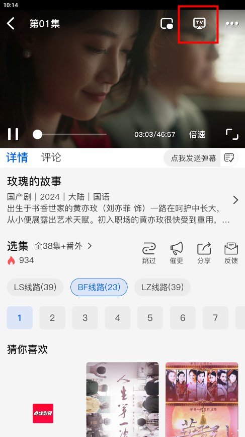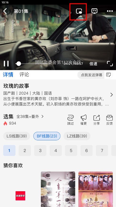 进入影视播放页面,点击如图所示标志即可小屏观看