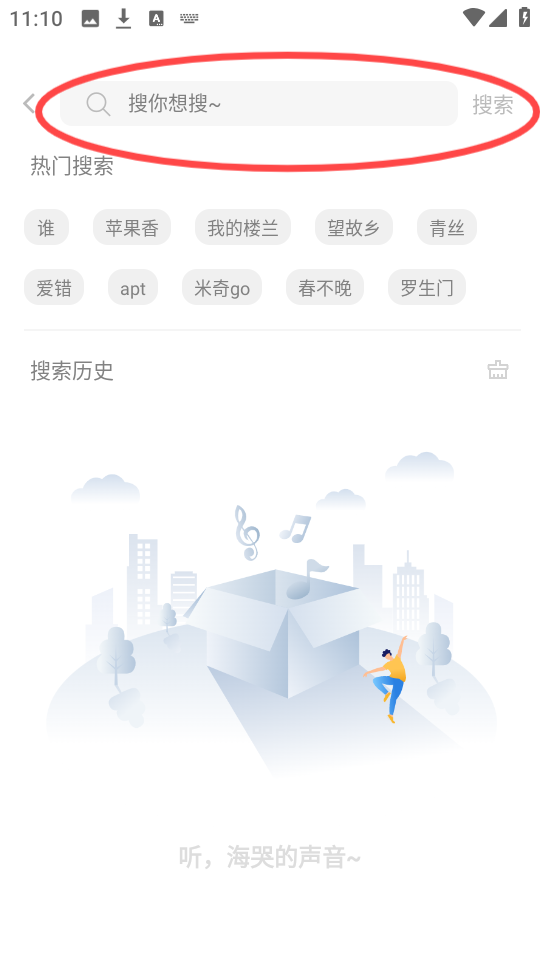2、在顶部搜索框中输入歌手或歌曲名称,借助这一方式,能够快速找到心仪的音乐。