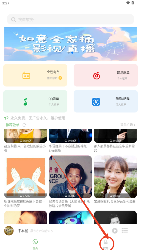 1. 进入如意音乐的首页,接着点击页面右下角的“我的”这一选项。