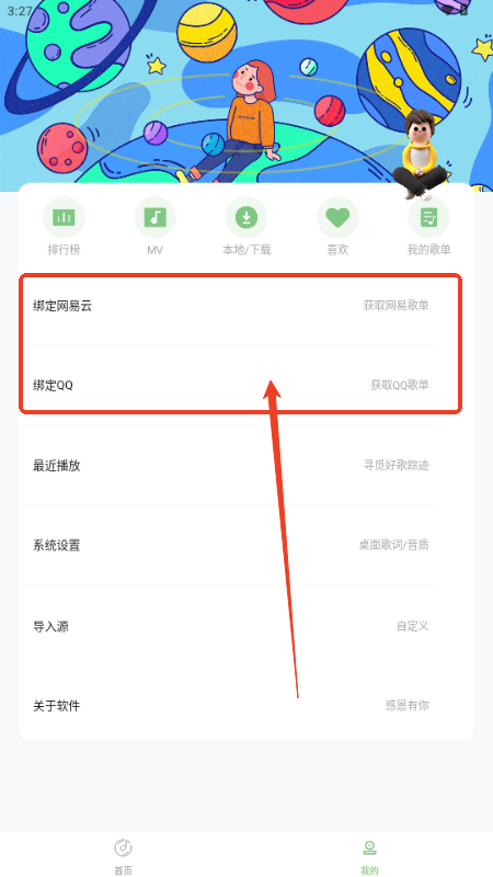 2. 在账户设置里寻觅并点击“绑定网易云”或者“绑定QQ音乐”按钮。