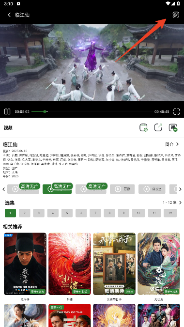 2、选择你要投屏的电视剧,以临江仙为例,选择右上角的TV按钮;