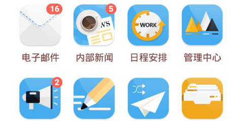 1、在本站点开通达oa,进入首页后,便能看到自身拥有权限的所有OA业务模块,点击对应图标即可进入相应业务模块。