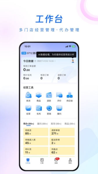 3. AI经营助手:全新推出的“AI经营助手”功能,能够智能化生成各类经营核心报表与数据,为商家打造功能强大的数据分析工具。
