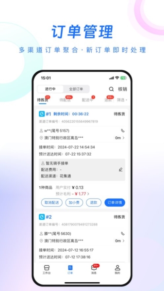 支持商家于饿了么、美团、京东等多个平台开展经营活动。系统能够自动实现多平台间商品、订单以及库存的同步,借助一套系统就能对全渠道库存进行管理,有效避免商品超卖情况的发生。同时,这还解决了商家在多平台经营过程中,管理线上外卖平台所耗费的精力成本问题,让门店操作更加统一规范,充分满足商家全渠道经营的诉求。