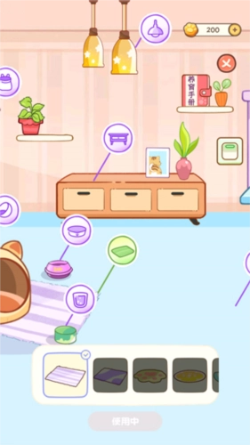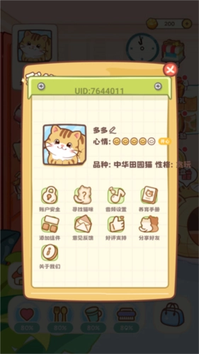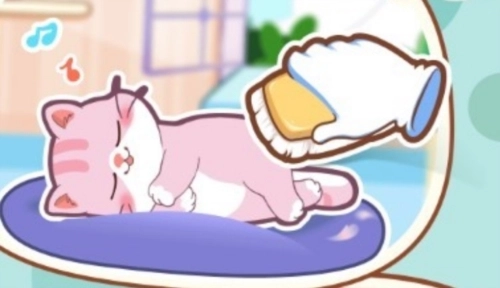 4、进入应用后,界面如图所示,玩家能够给猫咪喂食,还能陪它一起玩耍。