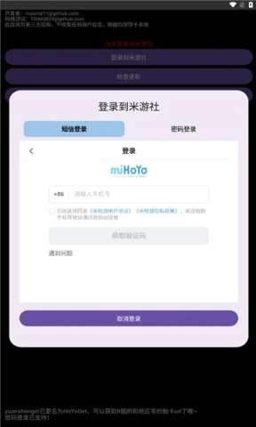 1、在本站下载并安装HoYoGet软件,安装完成打开该软件后,登录米游社账户。