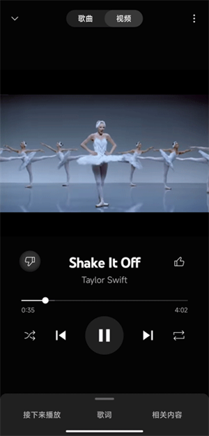 6、于歌曲详情页面,能够观看相应的MV,还可获取诸如歌词、相关推荐等更多关联信息。