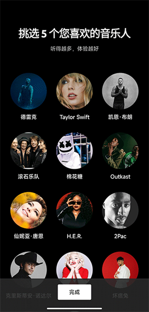 1、启动应用后,浏览并选择心仪的音乐人或乐队。